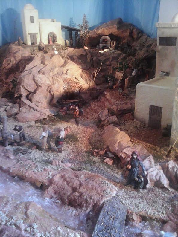 Tengo 16 años y vivo en Gijón, comence a montar belenes desde que tenia apenas dos años en casa de mi abuela, aquel belen despreocupado por el tamaño de las figuras o de las casas, hace dos años quise ponerme un poco más enserio con esto del belenismo y monte mi belén con el máximo cuidado que podia, pero sin elementos realizados por mí, el año pasado, debido a que en casa de mi abuela, que vive en un pequeño pueblo a las afueras de gijón, me quedaba sin espacio, pedimos permiso al parroco para que nos dejase instalar un belén en un salón de la iglesia que estaba inutilizado. Monté mi belen sobre dos tableros y tenia unas medidas de 2 x 0.50 metros ( un espacio fatal a la hora de la perspectiva teniendo en cuenta que el misterio es de 25 cm, los reyes de 20cm y el resto de figuras entre 8 y 10 cm). Este año es el primero que me pongo manos a la obra, realizo mis primeras casas y dispongo un tablero de 2.50 m de embocadura por 2.60 m de fondo. Estas son algunas fotos del resultado, espero critiqueis constructivamente y me ayudeis a mejorar. Una de mis grandes dudas es como realizar el año que viene (este por falta de fondos no pudo ser) el celaje del belén, ¿como quedaría mejor y como deberia poner la iluminación?. El resto de grandes fallos que veais por favor comentarmelos y decirme si podeis ideas para mejorar el año que viene, el belén lo monto yo solo sin ninguna ayuda y debo trabajar desde ya. MUCHAS GRACIAS DE ANTEMANO.