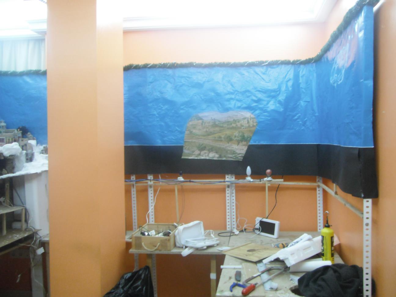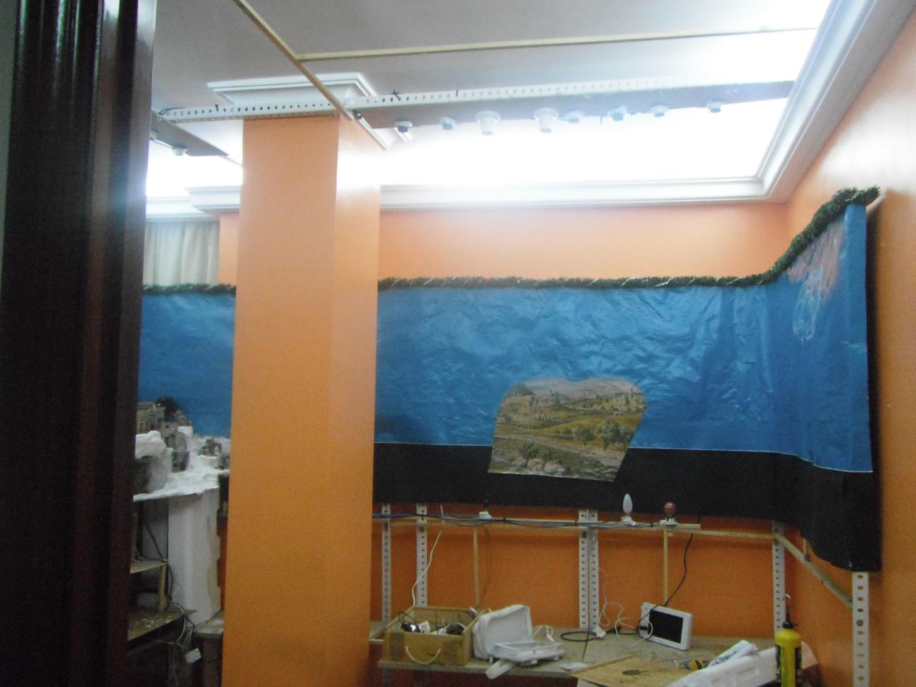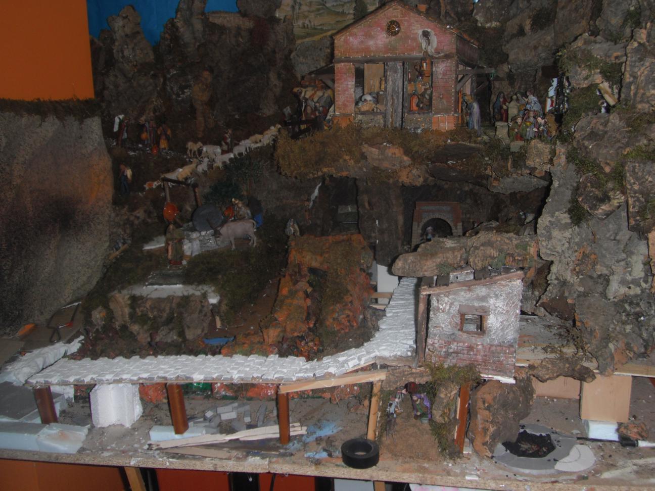 8ª y 9ª fotos: ya están acabados la pared de piedras y, casi, el lateral donde se encuentran la fuente, el palacio de Herodes y el molino, entre otras cosas.