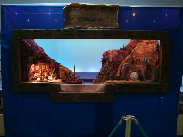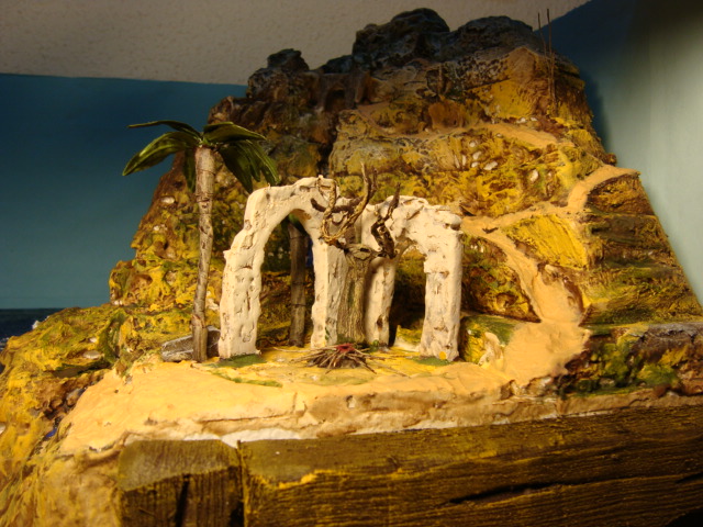 B) ladera derecha De lo alto de esta, nacerá el riachuelo que desemboca en el mar de la parte central. Tambien hay un puente por donde pasan los Reyes y un camino serpenteante, que baja, hasta unas ruinas. Donde se ubicará la anunciación a los pastores.
