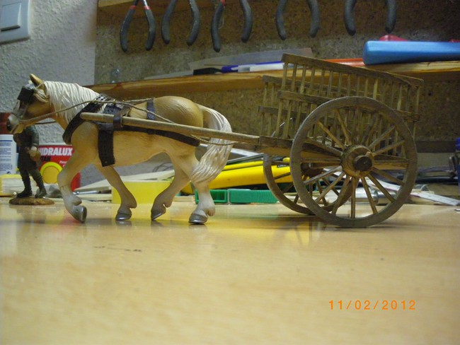 Vicente, te ha quedado fenomenal el carro de varas y el correaje del caballo. Me has recordado mi infancia.No estaria de más, que cuando puedas nos digas como lo has hecho.