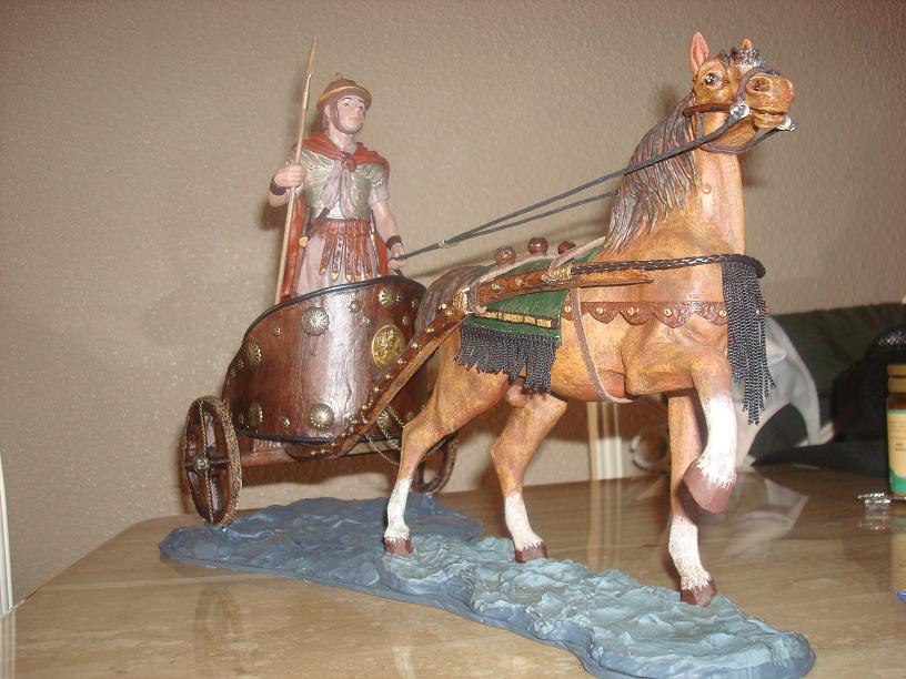 adjunto foto del carro que he realizado. el caballo esta pintado por mí y es de marmolina, como véis el romano es de Mayo de 19 cm.