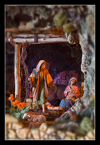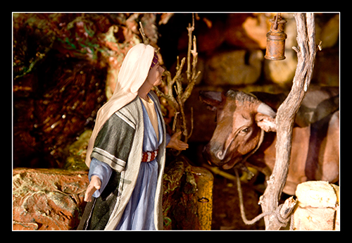 Tiene, 14 puntos de luz...entre brasas, hornos, etc. Y efecto noche- día. Es muy llamativo el farolito de San José que se enciende y parpadea. (Por cierto, ¡ ya me costó trabajo esconder el cable del farolito ¡).