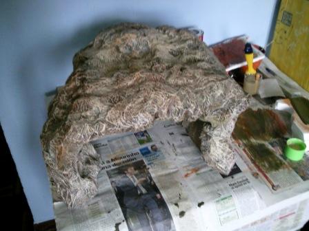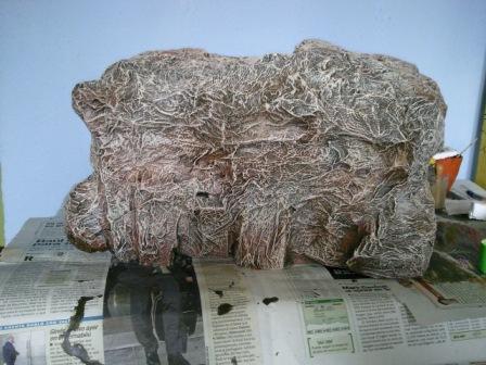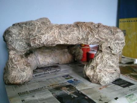 3º como no me gustaba el aspecto hice lo que había leído en otro tema recubrí toda la cueva con trozos de papel de cocina mezclado de cola blanca y agua.
