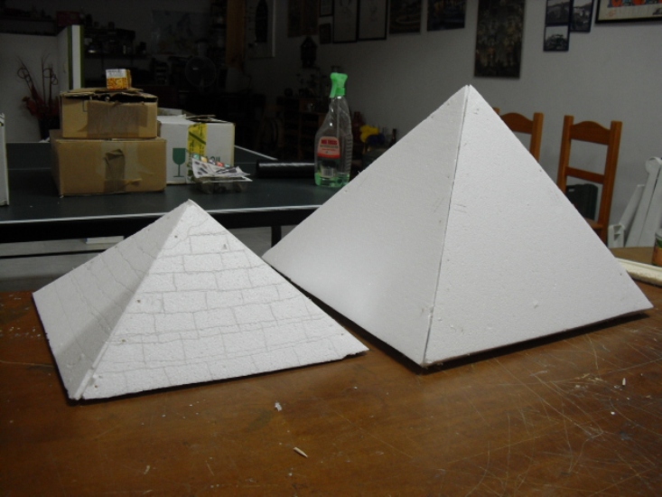 Gracias por tu favorable opinion, ya ire poniendo fotos a medida que vaya avanzando, en un ratillo pondre las piramides ya talladas y escayoladas pendientes de secado y pintado.