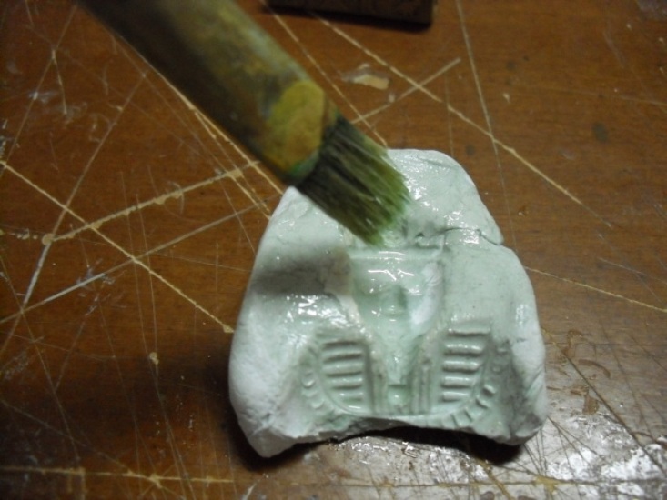 2.- Coger un trozo de pasta de modelar y presionar sobre la parte de la esfinge que queramos.