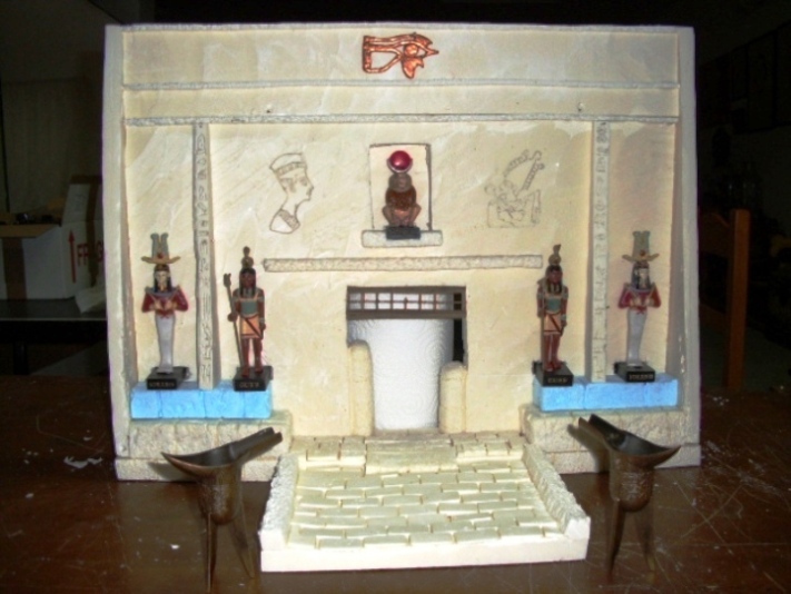 El ojo de Ra, esta hecho con pasta de modelar y pintado con pintura metalica de color cobre