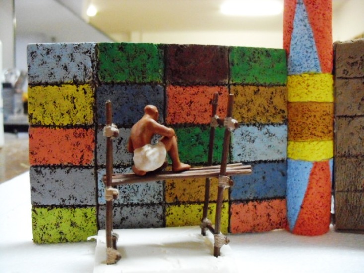 Y te queda mucho mejor, ya no brilla como antes. Muy bonita la escena del andamio, pero como sigas así, sólo podrás poner en el belén Egipto. Ya te puse cómo hice el suelo.