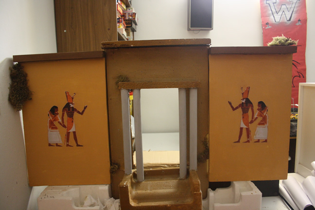 Hola de nuevo forer@s, siguen los avances, y aqui ya os muestro la muralla montada, a falta de más detalles (luz, palmeras, pinturas egipcias...)