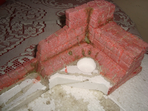 pude subir las fotos. utilice un pedazo de icopor reciclado solo espero vuestras criticas para mejorar, aun me falta terminarlo, en el hueco que se observa habia pensado meter el árbol allí pero el espacio parece pequeño, no se como terminarle alli.