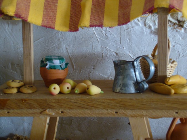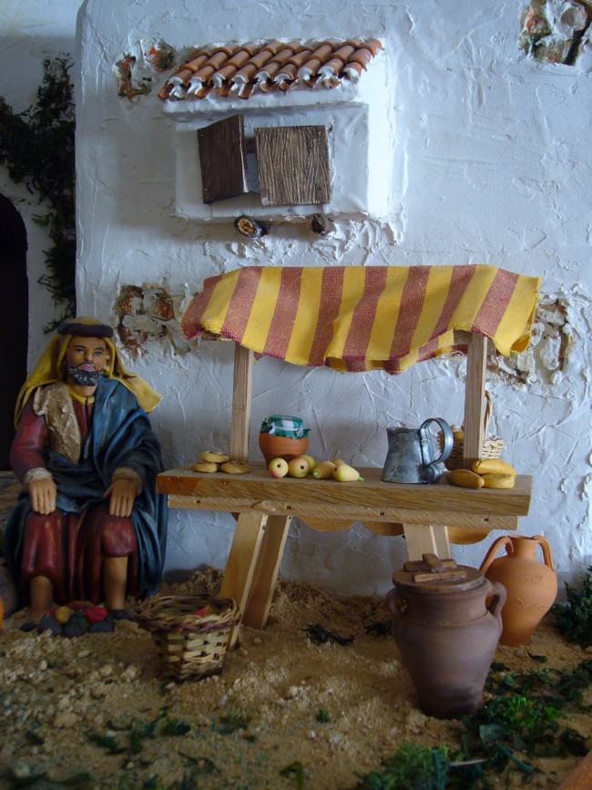 Hola. Hace unos días he conocido vuestro foro y estoy encantado con su contenido. Os envío algunas fotos del Nacimiento que estoy montando para este año. Como podéis comprobar, tengo algunas dificultades con el celaje: he ampliado el tablero y la tela se me ha quedado pequeña; además, la profundidad que tengo (80 cm) es escasa para el tamaño de las figuras (21 cm) que es el que condiciona naturalmente el de las edificaciones y "por imperativo legal" (adivinad de quién) tiene que ser un belén abierto, sin embocadura.