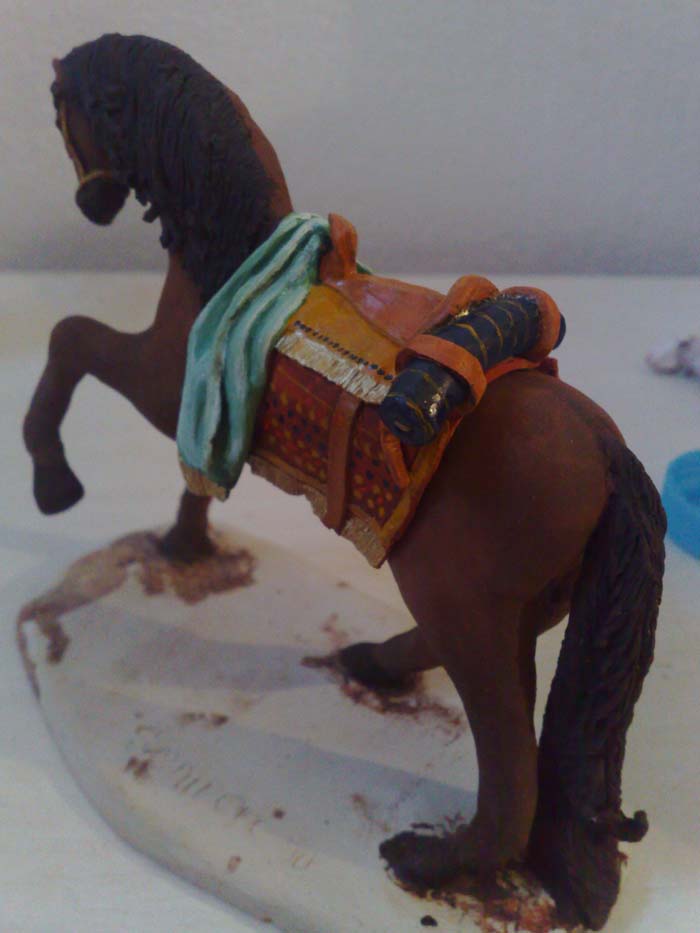 Bueno en estas tardes mientras preparaba unas cositas le he dado unas pinceladas al caballo y aqui os pongo como esta quedando, lojita el color elegido era el tuyo pero con las crines negras pero el problema es que cuando ha secado se ha hecho muy oscuro pero el resultado no me desagrada, si eso ya mas adelantre se lo cabiare, espero que os guste, aunque repito que los colores no son del todo definitivos. Un saludo y gracias por vuestros comentarios.