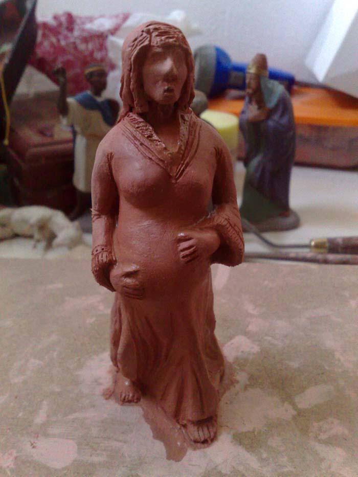 Bueno esta pasada tarde de domingo ya tenia muchas ganas de tocar el barro y como se ve que el instinto paternal me esta aflorando se me ocurrio hacer una embarazada, debe de estar de 12 meses a juzgar por el tamaño y no es que de cara sea fea es que 12 meses con el niñ@ dentro se ve que le estan deformando bueno bromas aparte, es de 10,5 cm. pasta ceramica jovi y esperemos que en el pintado se arregle un poco, llamare a corporacion dermoes..... Bueno espero que os guste y sigo practicando.