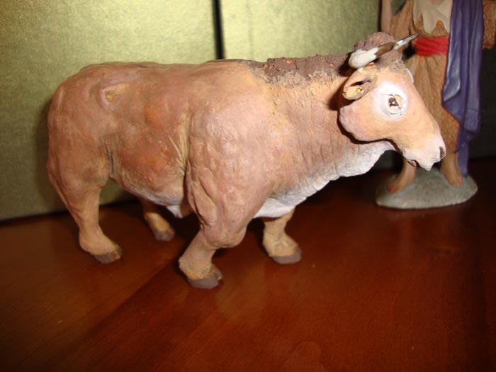 Jesus, Mame y Silvia muchas gracias por vuestros comentarios, la verdad es que gordo es se comido 1/4 de kilo de pasta cerámica, pero he de decir que la idea era esa ya que por aquí no es que vea muchos bueyes ni vacas pero tenia la imagen en la cabeza de los grandes bueyes que se pusieron en el foro y como yo trabajo de cabeza sin fotos ni nada pues esto es lo que salio, que decir tiene que estoy muy contento con el resultado, la verdad es que en barro fresco me gustaba mucho, cuando secó ya no tanto así que lo pinte rapidísimo y el resultado me encanta, lo he hecho de pie ya que da un poco mas de juego que el típico buey tumbado de los nacimientos, asi lo puedo poner con un pastor manelic haciendo de boyero o en el nacimiento.