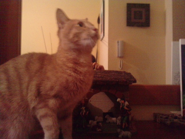 Aquí os dejo una foto de la casita y las figuritas que le he comprado, aun hay mucho que arreglar pero va quedando bien, también podéis ver que de vez en cuando la ataca un enorme monstruo felino, jejejej....