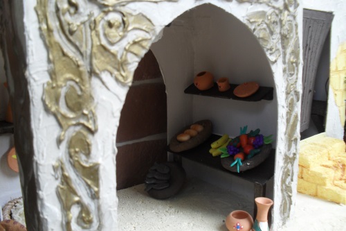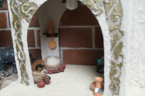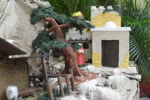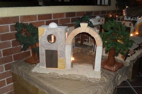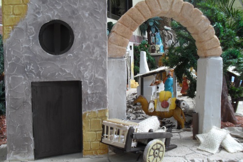Muy bonito y con muchos detalles,pero si ensuciaras las paredes y taparas las peanas estaria mejor.Es solo un consejo.Felicidades por tan bonito belen.