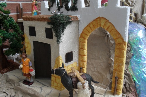 Muy bonito y con muchos detalles,pero si ensuciaras las paredes y taparas las peanas estaria mejor.Es solo un consejo.Felicidades por tan bonito belen.