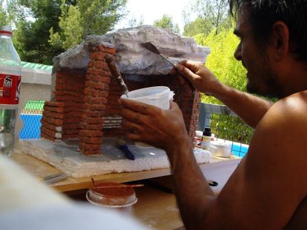 este es mi pesebre es lo que e podido hacer,a qui salen un par de ayudantes el pequeño mi hijo Oscar y mi gran ayuda en pintura mi amigo victor