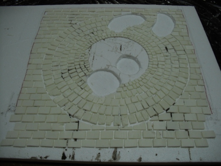 Gracias a todos por vuestros comentarios y por compartir el mismo criterio sobre las irregularidades. Mañana a ver si puedo terminar de poner las losas pequeñas hasta el centro y le doy una mano de cemento cola clarita para cubrir todas las separaciones y pensar el color que le dare al suelo