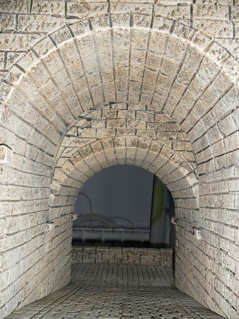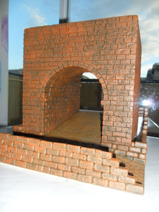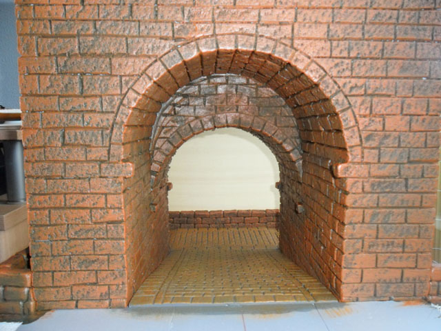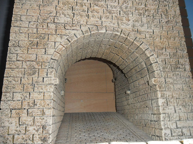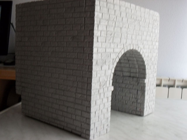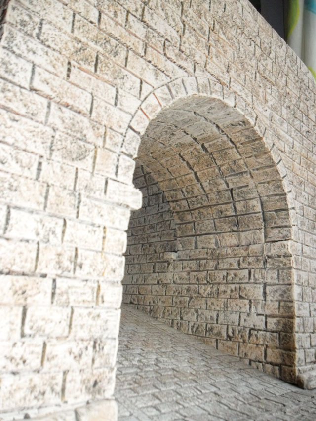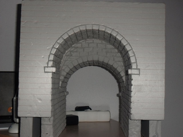 Gracias INASAN, me queda mucho por hacer antes de pintarlo, tengo que rematar la estructura y tallar las piedras exteriores, y tambien en el interior va la calle inclinada ya que si te fijas la parte trasera del arco esta mas alta que la delantera o lo que es lo mismo el suelo esta en cuesta. En fin seguire mostrando los avances que vaya haciendo.