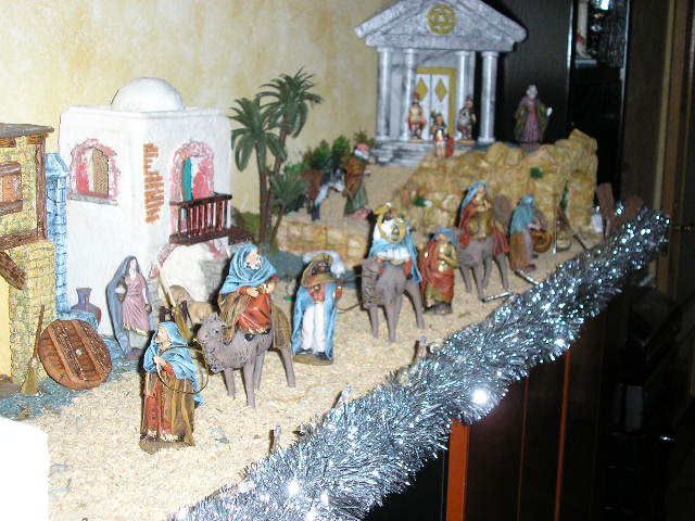Antonio: Me ha dado gusto tu Belén. Está muy bien logrado para ser el primero que construyes y qué bueno que al fin te decidieras comenzar y acompañar vuestro árbol de navidad con este hermoso Pesebre. Ahora bien paso a decir lo que más me ha gustado: Las rocas están muy bien hechas y el color que le has dado me ha gustado; el Palacio de Herodes está muy bonito; las palmeras también lo están; el color que le has dado a la fuente es muy bonito; los complementos de la carpintería muy bien hechos. Ahora la crítica constructiva: es recomendable tapar las peanas de las figuras para que no se vean pues quitan realismo al Belén. Felicitaciones y a seguir trabajando para que el proximo Belén sea más bonito que este.