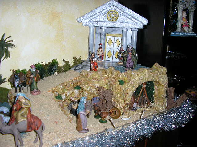 Antonio: Me ha dado gusto tu Belén. Está muy bien logrado para ser el primero que construyes y qué bueno que al fin te decidieras comenzar y acompañar vuestro árbol de navidad con este hermoso Pesebre. Ahora bien paso a decir lo que más me ha gustado: Las rocas están muy bien hechas y el color que le has dado me ha gustado; el Palacio de Herodes está muy bonito; las palmeras también lo están; el color que le has dado a la fuente es muy bonito; los complementos de la carpintería muy bien hechos. Ahora la crítica constructiva: es recomendable tapar las peanas de las figuras para que no se vean pues quitan realismo al Belén. Felicitaciones y a seguir trabajando para que el proximo Belén sea más bonito que este.