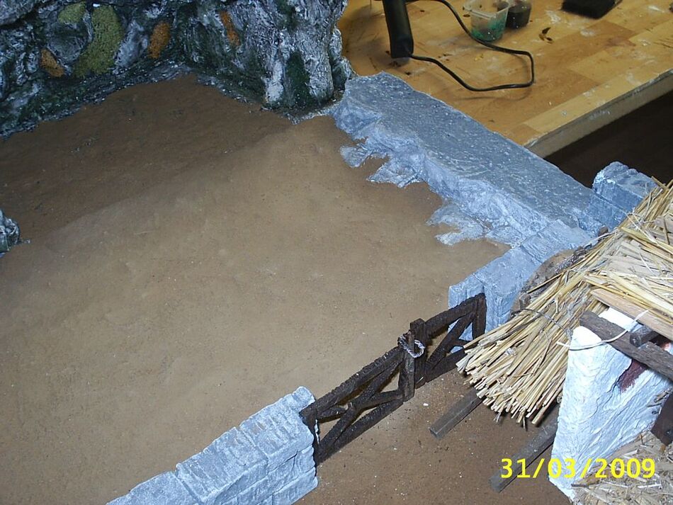Yo te aconsejo que en los muros les des una última veladura de color beige, más que nada para diferenciarlo de las rocas de las montañas (los tonos en la foto se parecen mucho).