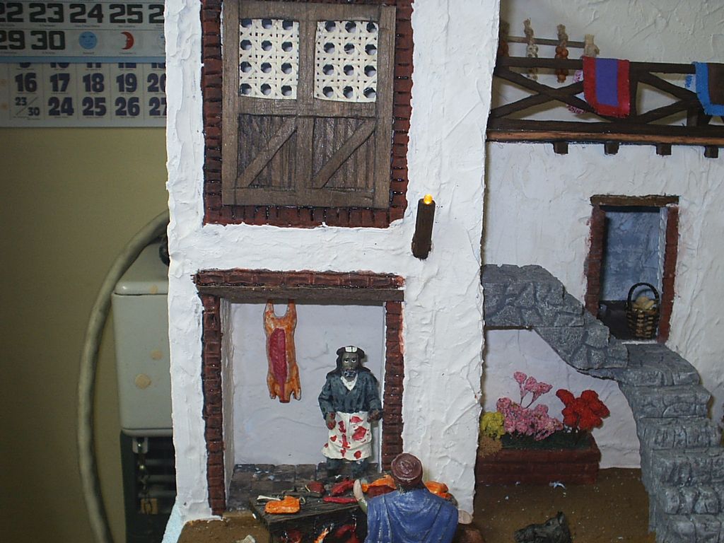 Si me permites un pequeño consejo, no dejes las fachadas de las casas tan blancas. Ensucialas un poco. Se hace muy bien con la tecnica del pincel seco. Los chorretones con pintura negra y amarilla con pincel seco, debajo justo de las vigas en los aleros de los tejados quedan muy chulos y le dan realidad al conjunto.