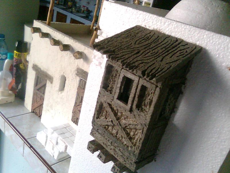 Al inicio no teníamos idea de donde iniciar, así que me encontré un artículo de José Vicente Cifre Fornas y con esa idea hicimos el nuestro. Claro que por la falta de polietileno extruido tuvimos que improvisar con algunas ramas secas de Aguacate y cascara de la corteza del mismo para algunos elementos. Otra cosa que sustituí fue la Escayola por Porcelanato (lo que utilizan para sellar las juntas de los pisos).