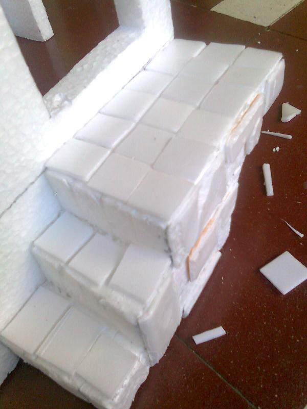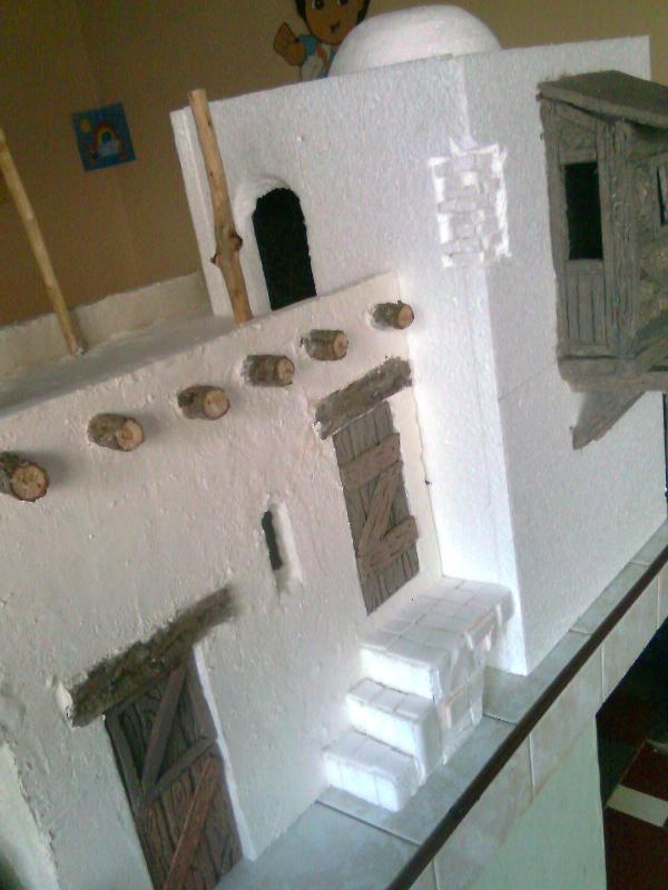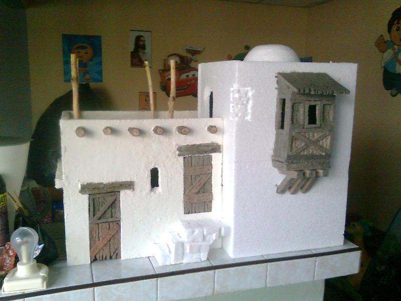 Al inicio no teníamos idea de donde iniciar, así que me encontré un artículo de José Vicente Cifre Fornas y con esa idea hicimos el nuestro. Claro que por la falta de polietileno extruido tuvimos que improvisar con algunas ramas secas de Aguacate y cascara de la corteza del mismo para algunos elementos. Otra cosa que sustituí fue la Escayola por Porcelanato (lo que utilizan para sellar las juntas de los pisos).
