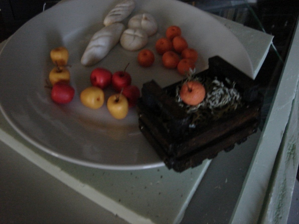 Bueno,pues aqui os cuelgo algunas fotos de como va mi "obrilla"...he decidio continuar a pesar de mis fallos,pero bueno espero que para mi proximo trabajo no me ocurra lo mismo...igual os pido ayuda,aviso !!! je je je ...bueno como vereis aun me queda mucho,en pintura solo esta dada la capa base,las maderas estan ya tintadas con nogalina y los hierros oxidados.El enyesado (aguaplast) tambien dado.Me falta antes de proseguir meter cableado que tambien tendria que haberlo hecho antes ( ..lo se) pero bueno.Seran tres puntos de luz tenue y una pequeña hoguera...a ver que tal!!! Os pongo tambien algo de mi trabajo de modelado con Fimo para poner en alguna cesta(falta pasar por horno y ultima patina) y por ultimo agunas fotos de las figuras que componen el belen...como os dije son de las antiguas de escayola pintadas por mi hace ya unos años...bueno,como veis aun me falta mucho mas de lo que quisiera jejejejej..pero ahi estamos!!! Espero poder terminarlo pronto pues he tenido la genial idea de comprarme un misterio el pasado fin de semana en Sevilla en marmolina...sin pintar!! quiero hacerlo con oleo,son de 32cm 5 piezas...son realmente bonitas,con un detalle y una perfeccion que os gustaran... espero no meter la pata por no decir otra cosa al pintarlas...este año quiero ponerles en un entorono barroco,tipo Napolitano,construccion que se las trae por mas sencilla que quiera hacerlo...y todo eso en un mes !!!!! jua jua jua ..estoy loco!!!!