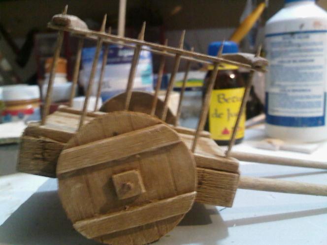 He modificado el carro según la idea de CarlesSp, faltan las cuerdas que atan el travesaño, solo me ha dado tiempo a una para ver el efecto. ¿Que os parece?.