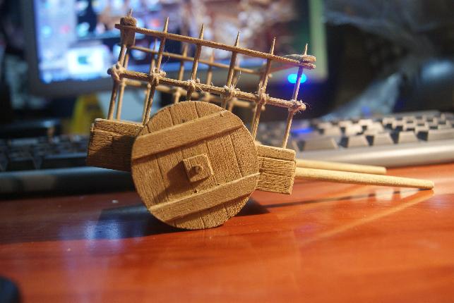 He modificado el carro según la idea de CarlesSp, faltan las cuerdas que atan el travesaño, solo me ha dado tiempo a una para ver el efecto. ¿Que os parece?.