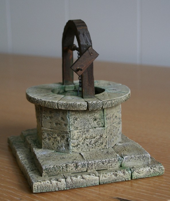 En cuanto a las piedra, puede que tengas razón, pero te explico, el pozo no era redondo sino que tenía 8 lados, es decir la misma forma que tiene ahora, y la unica forma que se me ocurrio de camuflar esa forma tan rara y tan poco habitual en un pozo (que normalmente son redondos) fue hacer grandes bloques de piedra, tenía miedo que si ponía una disposición como la que dices, (que sería la normal en un muro) quedase una forma poco creible al ser un pozo octogonal, por eso tambien utilice bloques grandes de piedra en el suelo y en la parte de arriba, para que todo quedase lo más armonico posible.