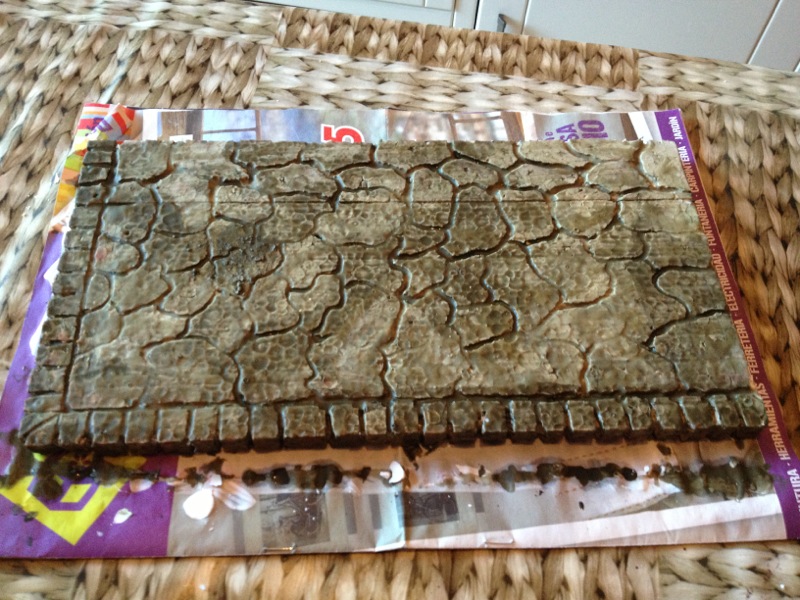 Bueno ahi llevais la tercera veladura de la construccion y el muro ya con la pintura de fondo. Ademas os dejo un poco el proceso de pintado de un pequeño trozo de suelo que llevara el pesebre, que lo hice con un soldador de estaño.