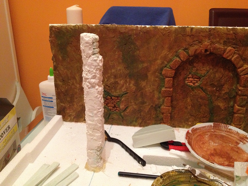 aquí lleváis la columna instalada ya en el belén, pintado de humedades y primera y segunda veladura...