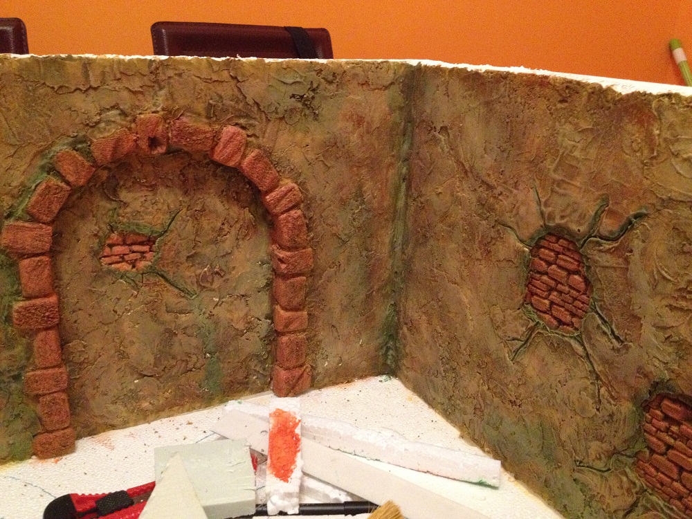 Bueno ahi llevais la tercera veladura de la construccion y el muro ya con la pintura de fondo. Ademas os dejo un poco el proceso de pintado de un pequeño trozo de suelo que llevara el pesebre, que lo hice con un soldador de estaño.