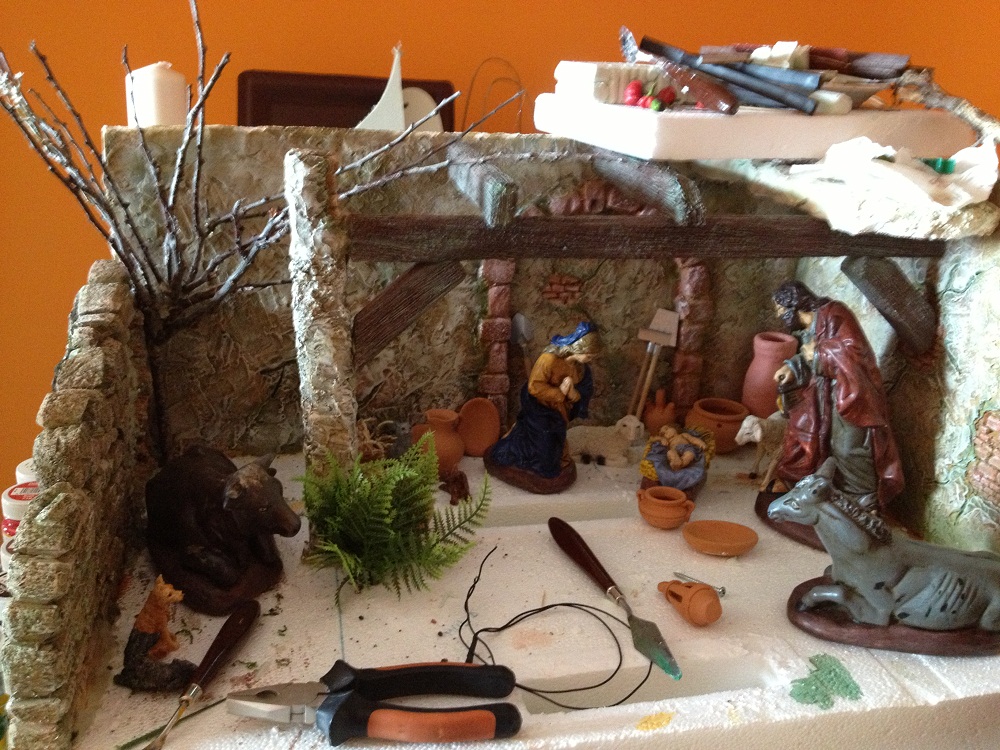 Es la primera vez que me atrevo a escribir en este magnifico foro. Tengo que decir que habéis sido todos una inspiración para mí. Después de ver las maravillas que hacéis el año pasado hice un pequeño belén para el colegio donde trabajo, y después de eso quede tan maravillado con la experiencia que este año, y siguiendo vuestras técnicas me he aventurado a realizar uno para mi casa. Ya os digo que siguiendo vuestras experiencias y enseñanzas, no he innovado en nada todo es copiado, así que espero que os guste.
