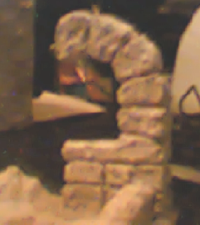 Hola hay en la herreria me gusta y lo curioso es que has puesto los palos en el frontal de la casa ,no que no distingo bien es el color ,intenta que los palos sean algo más oscuros , y en el arco que lo has hecho pirogravado o directo a la escayola . ah y en la herreria intenta poner en las paredes pequeñas herraduras ó arandelas colgadas dan buen efecto .saludos