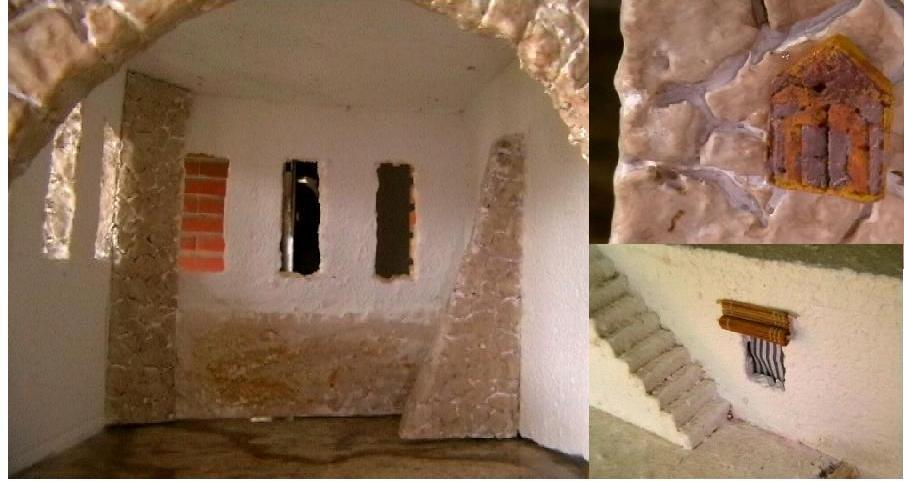 está hecho de porex expandido, con cola blanca, cubierto de pintura plástica de revestimiento y nogalina.
