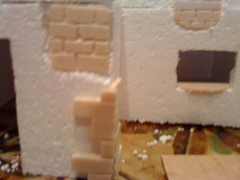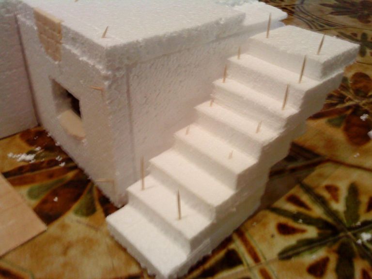 Hola me llamo David tengo 14 años i llevo desde los 10 haciendo el belen. Lo que siempre ponia lo mismo distribuido de diferente manera, no construia edificaciones, puestos,fuentes etc i este año quiero empezar con las edificaciones, he empezado una con porexpan por no tener presupuesto para hacerlo con "polietileno" extruido. Para pegar las paredes estoi usando silicona caliente, demomento estoi contento con el resultado ya que namas tengo 14 años. Aqui biene mi duda quiero hacer detalles con retales de porexpan de ese de alta densidad del amarillo i no se si enyesar antes o despues de colocar ladrillos , desconchones etc. Aqui os adjunto unas fotos de la construcion. i me gustaria que me dijerais por ejemplo pues la parede principal la haria toda de piedra, la puerta la haria habierta etc espero que hos guste