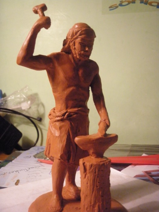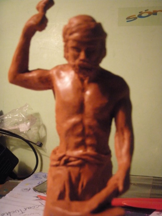Prometes mucho, es una figura muy buena, aunque te falta acabarla, no la dejes así, cuando esté cocida y con paciencia ve quitándole barro en las manos y en el alguna otra parte, lijala piedes hacerlo y no tiene porque romperse, suerte.