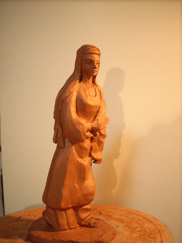 Mmmm, se ve un buen trabajo, te pregunto ¿es la primera vez que trabajas con barro?, ¿hay otras figuras antes que esta?... esto detalles es bueno saberlo pues asi uno puede sugerirte algunas cosillas, pero si dices que es la primera...es buenaaaaa.