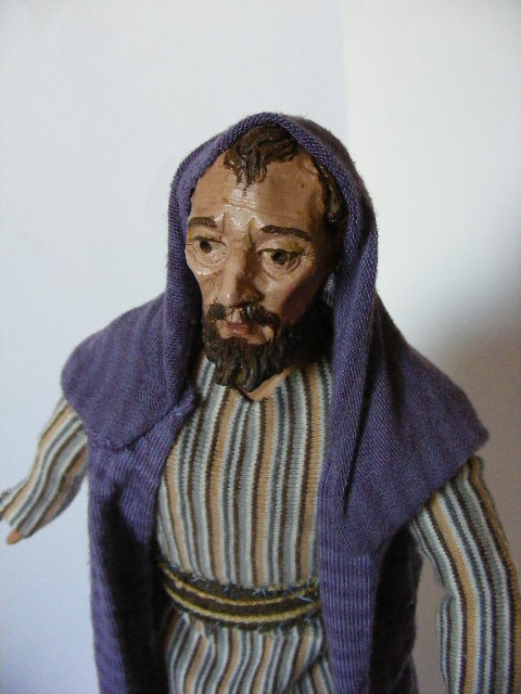 gracias a todos la verdad es que yo solo he realizado el cuerpo, lo demas son cabezas y manos. esta en concreto es media cabeza de un san francisco que me dieron y yo he realizado solo la parte trasera, despues la he retocado de pintura y le adaptado unas manos de marmolina y la ropame la ha echo mi suegra, yo tambien la he vestido,pero las telas eran para probar y viendo el resultado le haremos unas ropas con telas elegidas y mejores. cuando termine otra que me estan terminando la ropa os la pondre para que opineis, pero es lo mismo que la que habeis visto. ojala pudiera realizar yo grandes figuras, pero de esta forma si me atrevo. a los artesanos belenistas les tengo mucho respeto y admiro su gran trabajo, pues gracias a ellos vemos y pordemos realizar los belenes.