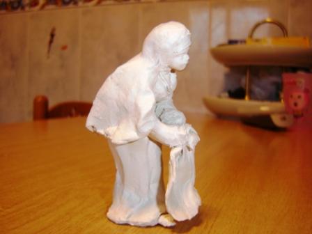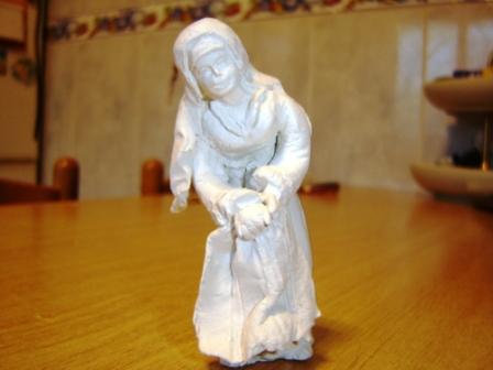 Despues de mucho ver y leer me he decidido a hacer mi primera figura para el Belén del año que viene. La he hecho con pasta Das y aún está por retocar y pintar. A ver que os parece.