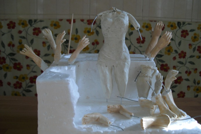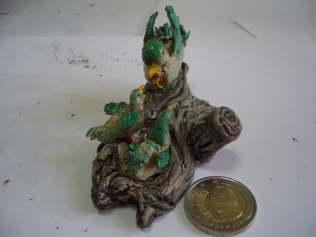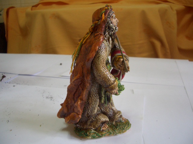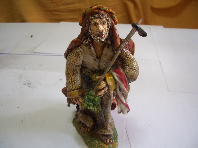 No sé si has usado o conoces unas masas poliméricas parecidas al Fimo que se llaman Sculpey y en inglés por polymer clay he visto unos videos en youtube alucinantes de cómo modelar figuras, y parece una masa muy maleable y cómoda de trabajar y despues se queda muy dura y se puede pintar como quieras, hacen verdaderas maravillas en cabezas pequeñas y en cuerpos, claro que parece fácil pero supongo que son especialistas, además lo van explicando en inglés y no me entero de nada, pero merece la pena verlos, se aprende mucho. Despues de esta figura, frenaré el ritmo y luego pasaré a experimentar con otras masas, por ejemplo la Jovi terracota que tu usas y que te va tan bien, siempre que no me manche mucho, no me gusta nadita tener las manos rojas, por eso uso la porcelana que muy limpia, pero veo que para figuras más grandes