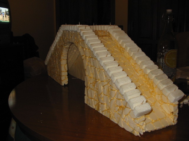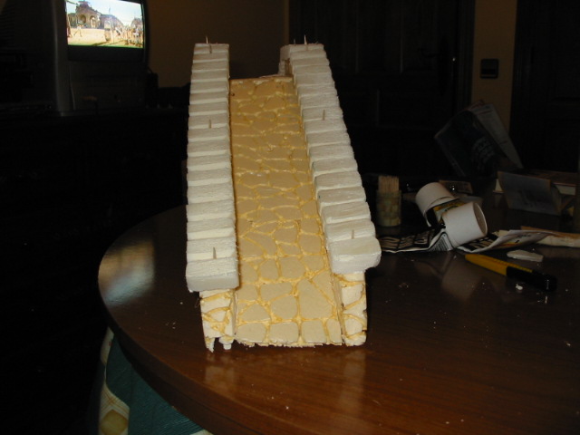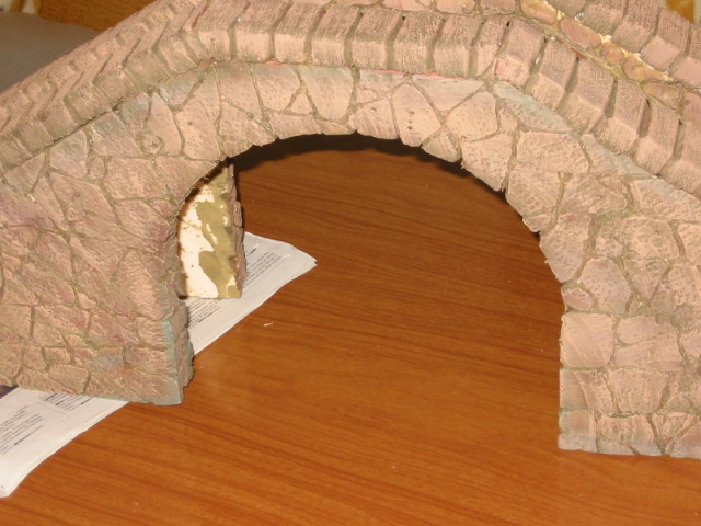 No te resultará complicado, es ir pegandole losetas en forma de piedras para hacer el arco perfecto y además creo que realzaría aun mas ese bonito puente que has hecho.