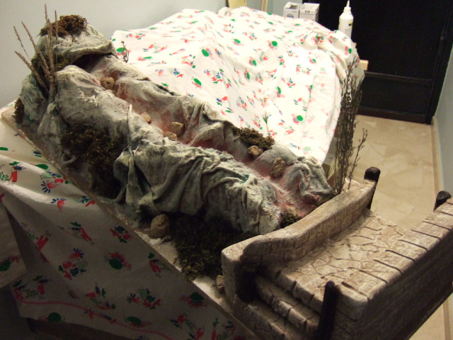 En cuanto al río me gusta más hacerlo con el porexpan o bien recubrir más con escayola, porque la tela se ve demasiado que es tela.