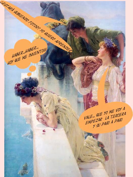 Mónica, genial esa aportación, pero creo que Diana se había pedido la que está inclinada, pero supongo que le dará igual, las tres estamos guapísimas, lánguidas, étereas, soñadoras,,,, y en la fiesta como verás está la escuela en pleno, primero los niños tocando y despues los más mayorcitos. Toni creo que es el que está al final, uno de los tres guapetones, el tendrá que elegir quien es. Muy bueno ese apunte, yo estoy conforme, ya me habia elegido,ja,ja, cómo es la única rubia que hay......pues para mí.