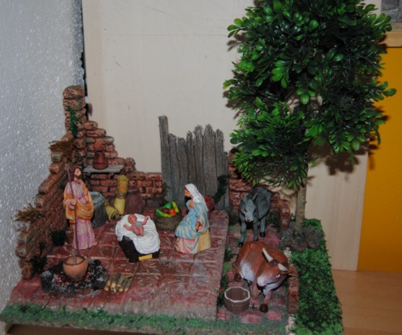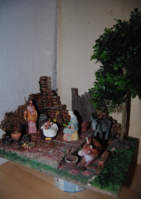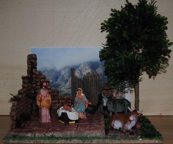 Le has añadido varias cosas ,que lo que hacen es mejorar el trabajo ,sigue con ilusión haciendo trabajos ,que es la única forma de aprender .Unas ruinas son eso unas ruinas ,y el trapo lo lleva San José en las alforjas del burro ,si fuera necesario poner un sombrajo , lo saca y lo pone a modo de techo ,pero ese día hacia una noche de verano 25º y sin aire