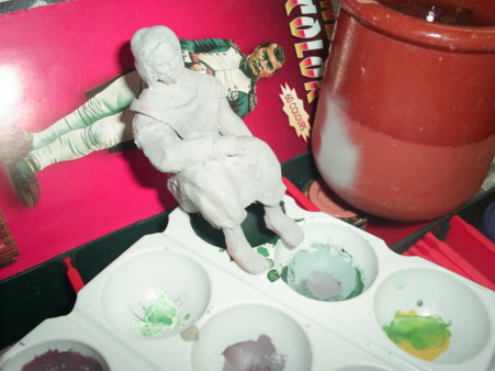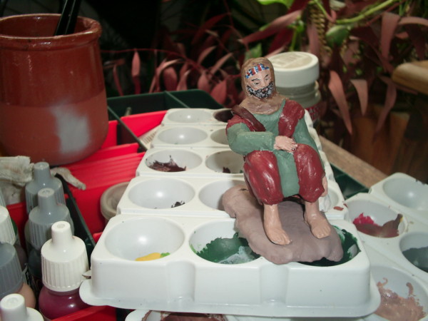 Me encanto en Madrid el Belen del ayuntamiento de este año, sobre todo el hospital de peregrinos o posada donde dormitaban varios personajes, combinando tamaños y distancias. Me vino la inspiración y zas yo también tengo mi viajero cansado durmiendo en un rincón. Le hemos bautizado como el dormilón